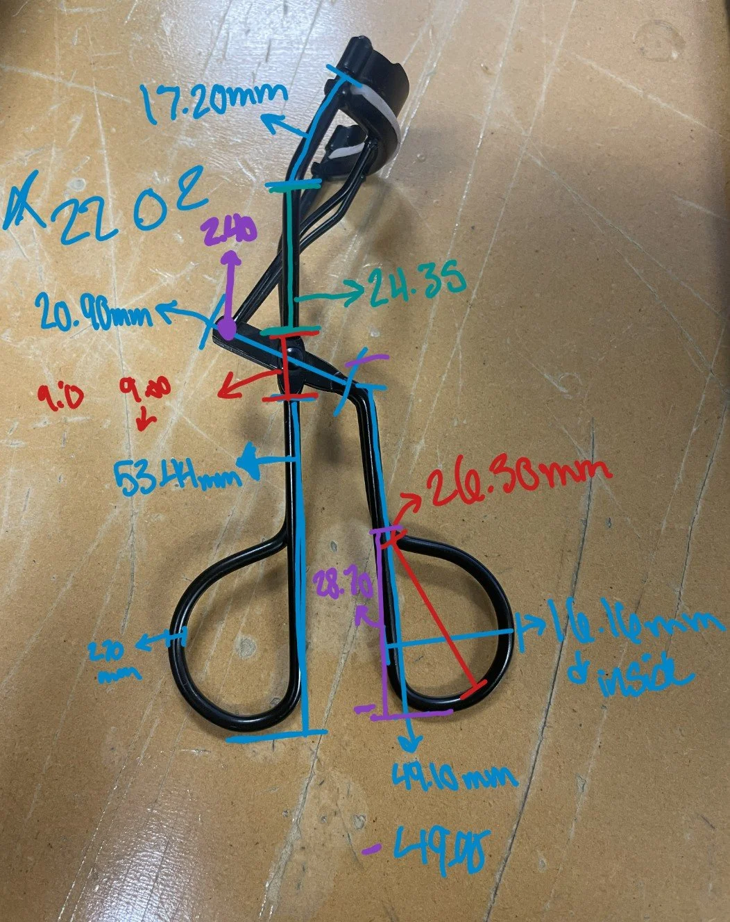 For the reverse engineering process of the eyelash curler, the following steps were taken: